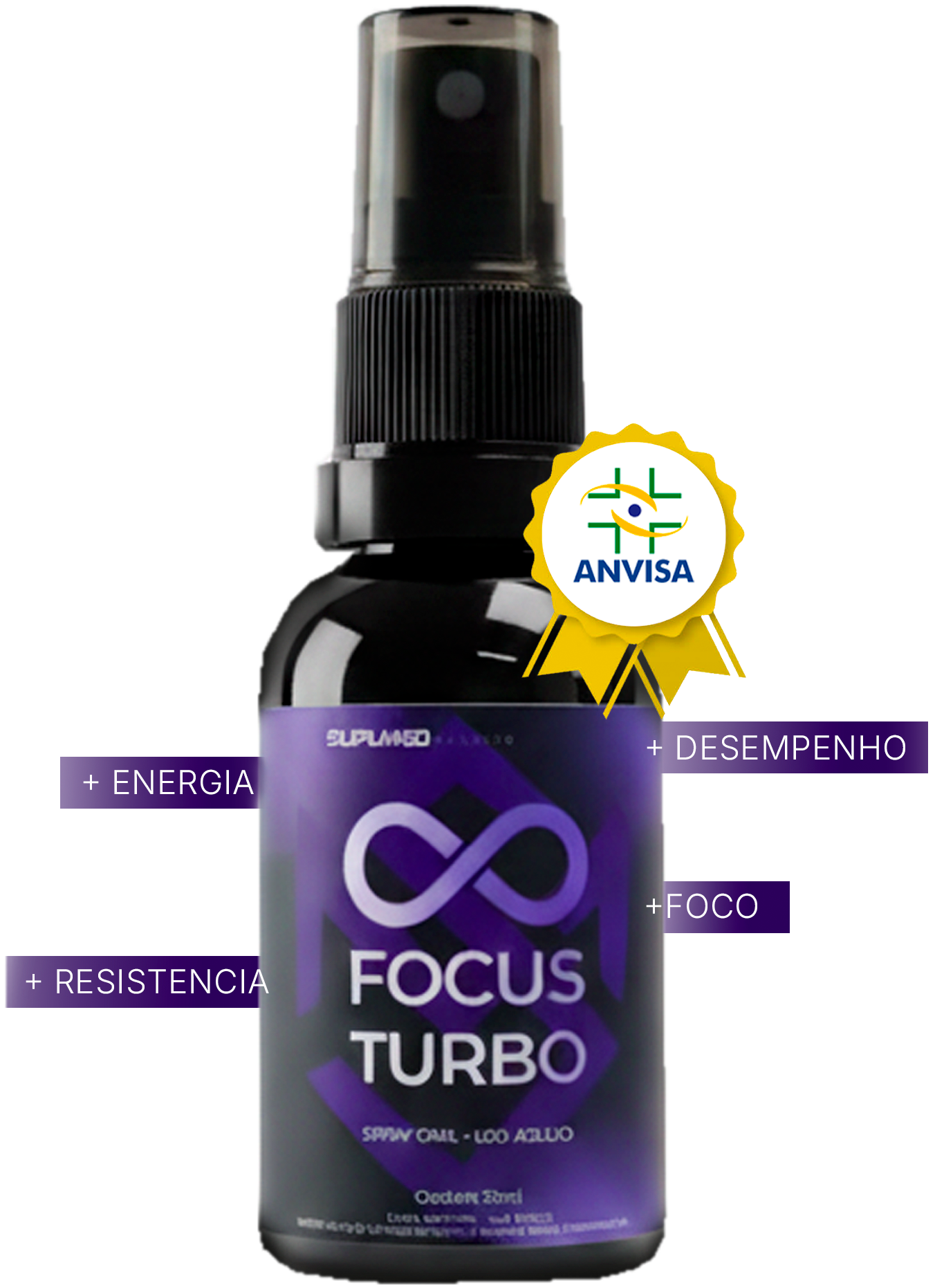 Focus Turbo é um spray de uso díario que, com apenas uma borrifada aumenta a clareza mental, a concentração e a disposição por até 3 horas Além de impulsionar seu desempenho no trabalho, treinos ou estudos, sua fórmula promove o equilibrio emocional, ajudandoa reduzir o estresse e a ansiedade para mais confiança e motivação.